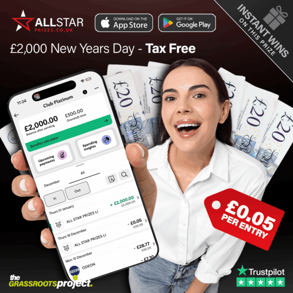 The live draw will take place on the All Star Prizes Facebook page using Google’s random number generator to select the winning ticket number from all Entrants.