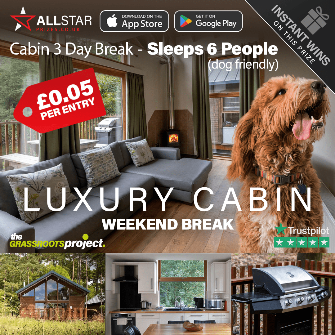 Escape the everyday and treat yourself to the ultimate luxury break! For just 5p per entry, you could win an unforgettable 3-night stay in a stunning luxury cabin, designed for pure relaxation and comfort.