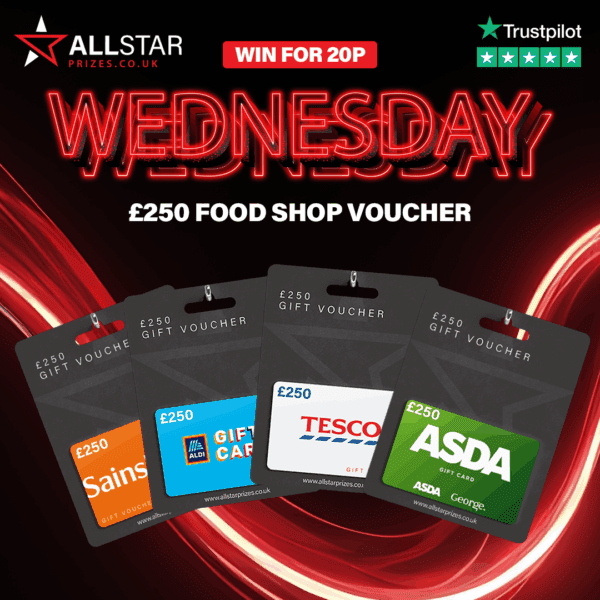 You may enter the competition online or for free by post by sending your entry to All Star Prizes on a postcard. You must have an account on All Star Prizes for your entry to be processed. All details on your entry MUST correspond to the details on your account to receive the order confirmation and ticket number. Postal entries received without a registered account cannot be processed.