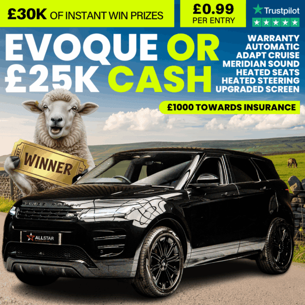 The live draw will take place on the All Star Prizes Facebook page using Google’s random number generator to select the winning ticket number from all Entrants.