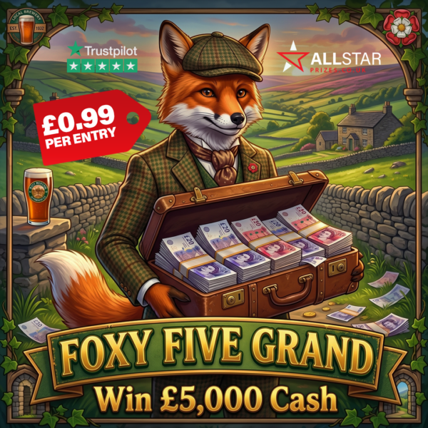 You may enter the competition online or for free by post by sending your entry to All Star Prizes on a postcard. You must have an account on All Star Prizes for your entry to be processed. All details on your entry MUST correspond to the details on your account to receive the order confirmation and ticket number. Postal entries received without a registered account cannot be processed.
