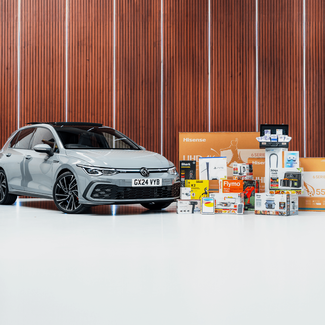 Prize 1 – Golf GTD OR £25K + £20,000 Cash + £5,000 Tech Bundle