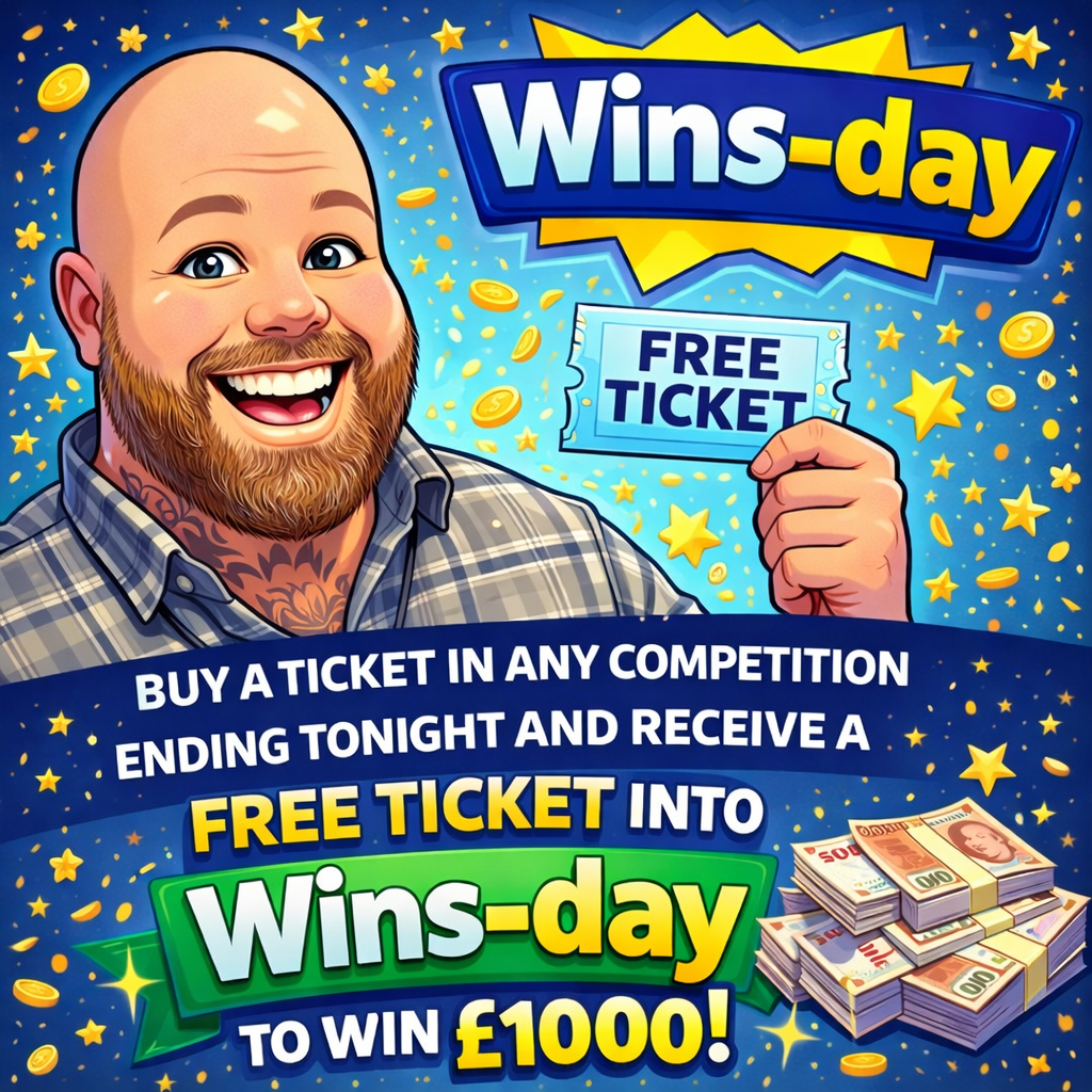 Buy a ticket in any competition ending tonight and you’ll automatically receive a FREE ticket into Wins-day, giving you the chance to land a £1,000 cash prize at no extra cost.